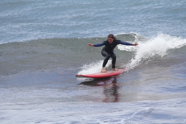 Sie heißt dich in der Surfschule herzlich willkommen, hilft dir und beantwortet deine Fragen, damit du eine tolle Zeit hast.